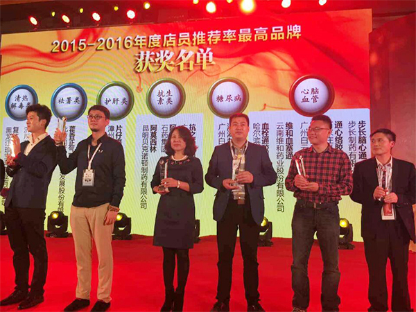 2016年10月24日,第十六屆中國藥店高峰論壇在云南昆明舉行,在本次高峰論壇公布的“2015-2016年度中國藥店店員推薦率最高品牌”中,維和血塞通榮獲心腦血管類店員推薦率最高品牌。