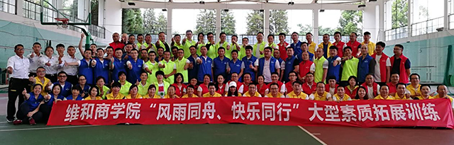 在各位班委的精心策劃下,第一天的課程為素質(zhì)拓展訓(xùn)練。維和商學(xué)院為期一天的“風(fēng)雨同舟、快樂同行”首屆大型素質(zhì)拓展訓(xùn)練在專業(yè)教練團(tuán)隊(duì)的帶領(lǐng)下拉開了序幕。