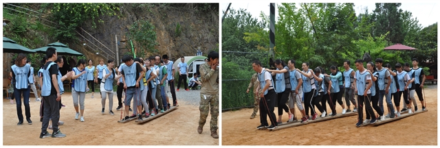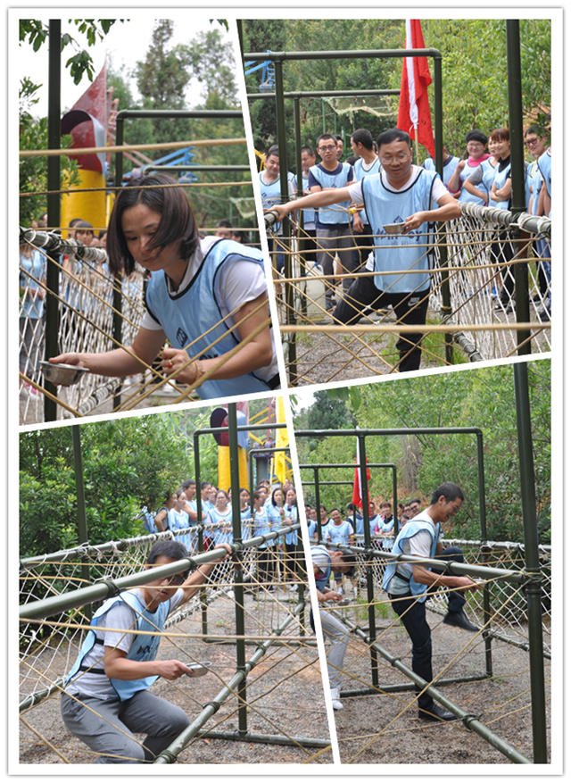 障礙取水:手端一碗水穿越障礙倒入桶中,考驗(yàn)了隊(duì)員們不畏艱險(xiǎn),為達(dá)目標(biāo)勇往直前。