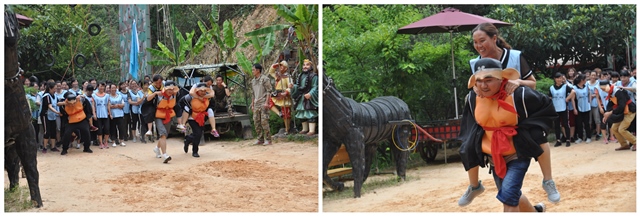 同心鞋:兩塊木板就是鞋子,大家“同鞋同心”團(tuán)結(jié)協(xié)作,為了共同目標(biāo)拼搏前行。